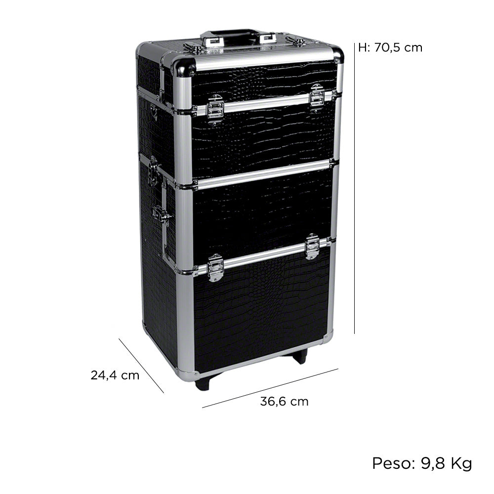 Professioneller schwarzer Trolley mit Krokodilprägung 36,6 x 24,4 x 70,5 cm